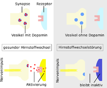 Ich vermute zu 99 % das der nächtliche und tägliche Elektrosmoke, plus telefonieren direkt mit Smartphone, die Kalzium-Ionen-Kanäle der Präsynapsen so beeinflussen, dass ihre Signalwirkung betreffs Dopamin in den Versikeln stark geschwächt wird.